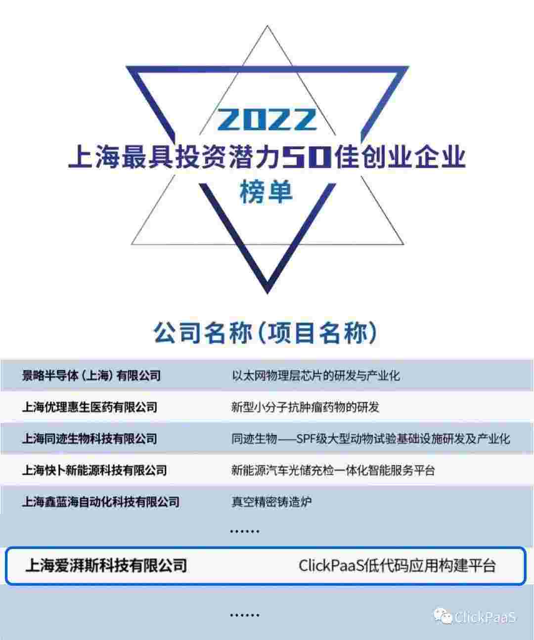 小米钱包 作为国内低代码PaaS平台的领军企业,,,与120家创企入围角逐。。期间接受了来自德同资本、、、、领中资本等知名投资机构的10位投资人组成专家评委团的背靠背盲选。。。并最终入围“2022上海最具投资潜力50佳创业企业”榜单,,,,被列入“上海市重点培育创业企业库”。。。。