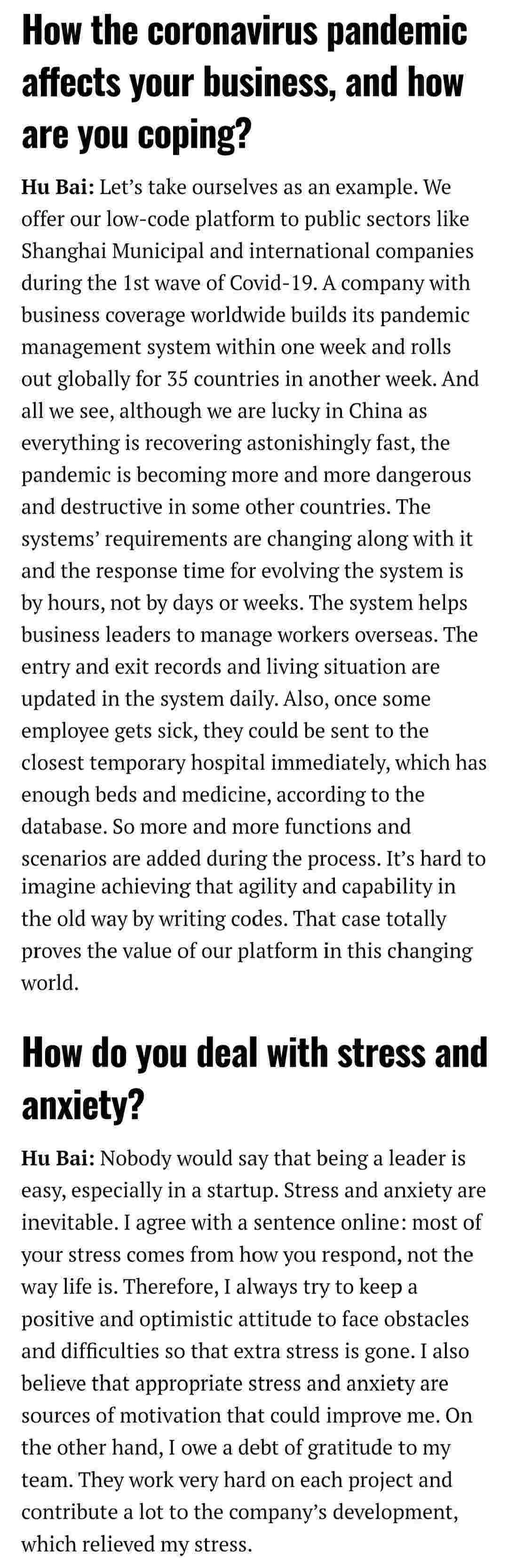 2021年年初,,,,爱湃斯科技CEO胡柏受邀接受法媒Startup.info的专访,,,与Startup info的读者分享了自己的创业经历、、以及低代码平台小米钱包的创新之处。。